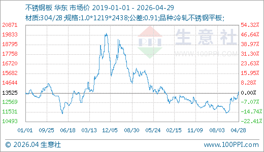 据生意社价格监测,不锈钢上半年小幅震荡下半年大起大落的走势,年初