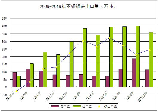 2009-2019年不锈钢进出口量
