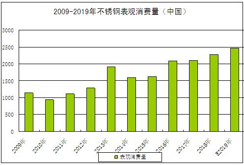2009-2019年不锈钢表观消费量