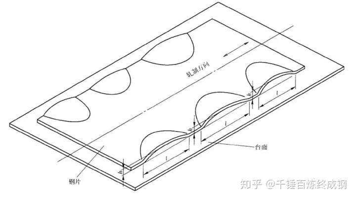 不平度:钢板的不平度是指将钢板自由地放置在平台上测得的钢板下表面和平台间的最大距离,它包含中浪、边浪、翘曲三种类型。